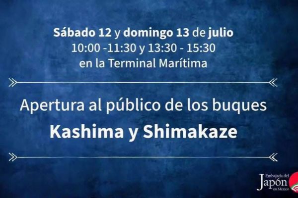 • Apertura al público de los buques Kashima y Shimakaze, los días sábado 12 y domingo 13 de julio, en horarios de 10 a 11:30 a.m. y de 1:30 a 3:30 p.m., en la Terminal Marítima.