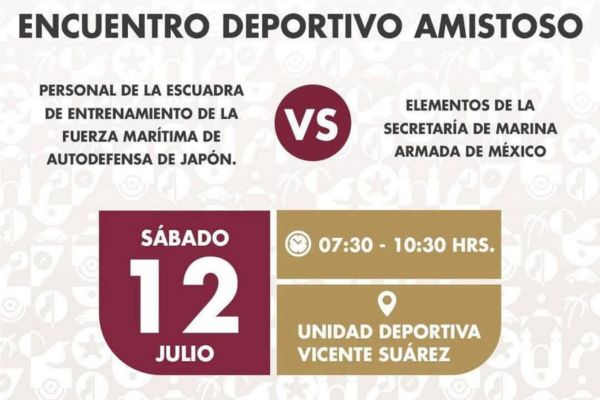 • Encuentro deportivo Mexico-Japón, en la cancha de la unidad deportiva Vicente Suárez, el sábado 12 de julio, de 7:30 a.m. a 10:30 a.m.