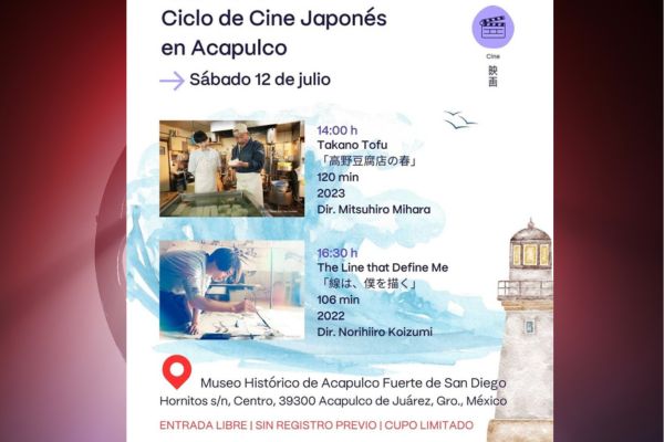 • Ciclo de Cine Japonés en Acapulco en el Fuerte de San Diego, exhibición de dos películas actuales japonesas. Entrada libre. Cupo limitado.