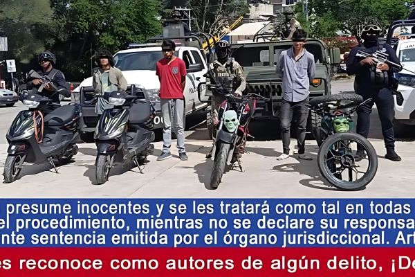 Tras no poder acreditar la propiedad de los vehículos, una revisión del estatus legal de las motocicletas reveló que dos de ellas tenían un reporte de robo vigente. Los tres hombres y las unidades aseguradas quedaron a disposición de la Fiscalía Especializada en Recuperación y Robo de Vehículos.