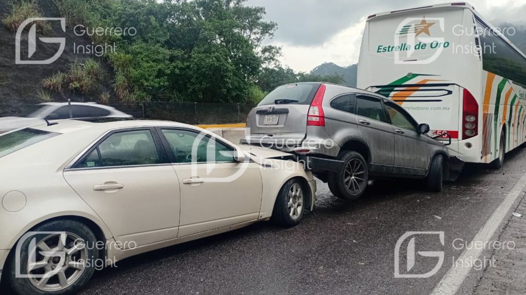 El percance ocurrió alrededor de las 3 de la tarde, cuando una camioneta Nissan NP300 color blanco se vio involucrada en un choque que luego provocó una carambola entre un autobús de la empresa Estrella de Oro, un vehículo particular y otra camioneta.