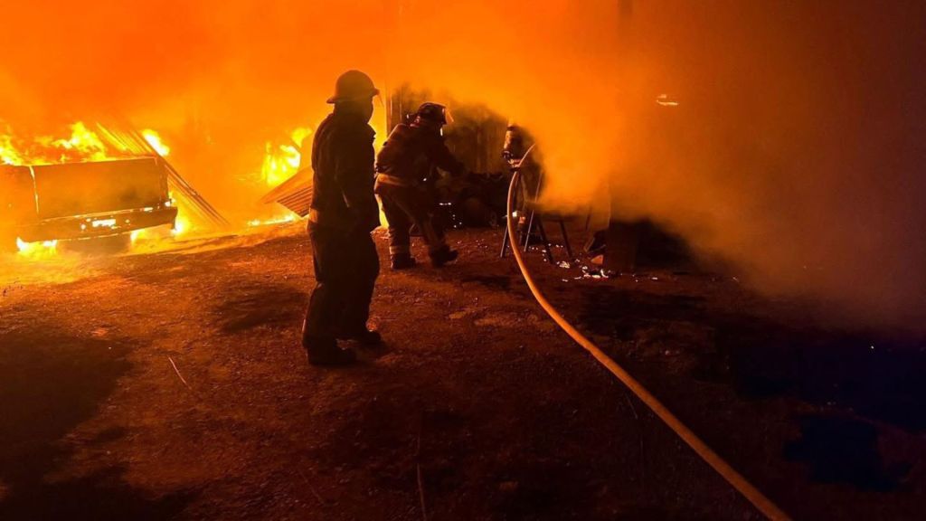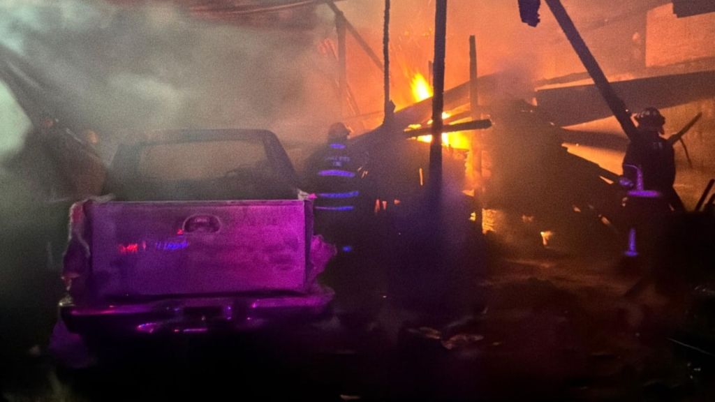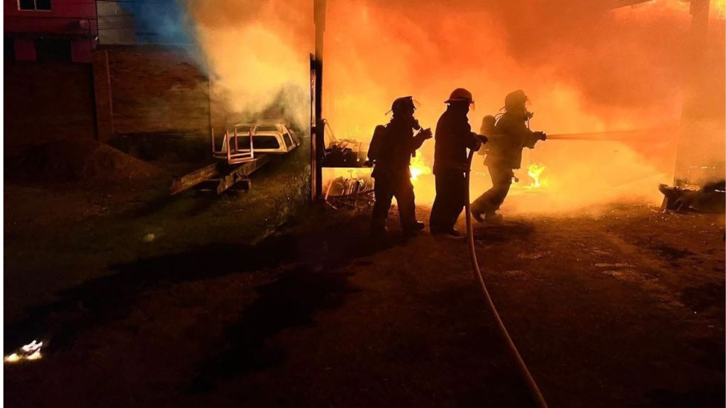 Redacción / Chilpancingo. La noche del miércoles estalló el caos en la colonia Balcones de Tepango, al sur de la capital guerrerense. Alrededor de las 8:30 de la noche, una explosión inicial —al parecer de un tanque de oxígeno— desató un voraz incendio en una bodega de madera y lámina, repleta de objetos inservibles, ubicada en la calle Arcadio G. Memije, frente al reclusorio y cerca del Parador del Marqués. El fuego, de altura impresionante, también consumió una camioneta pick-up blanca.