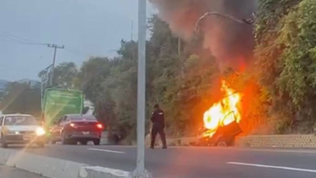 Redacción / Acapulco. Un accidente vial con incendio en la Escénica de Acapulco generó alerta y movilización esta mañana de domingo. Un vehículo particular chocó contra un autobús de pasajeros cerca del acceso a Fraccionamiento Guitarrón (o el hotel Las Brisas), lo que provocó que el auto terminara envuelto en llamas, según reportes de Tránsito Estatal.