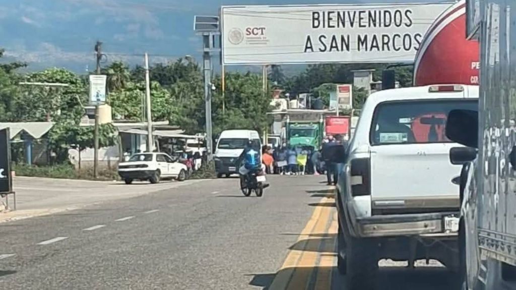 Redacción / San Marcos. Maestros, alumnos y padres de la Preparatoria Popular de Las Cruces bloquearon la federal 200, a la altura del arco municipal, exigiendo el pago de nóminas pendientes desde hace siete meses.