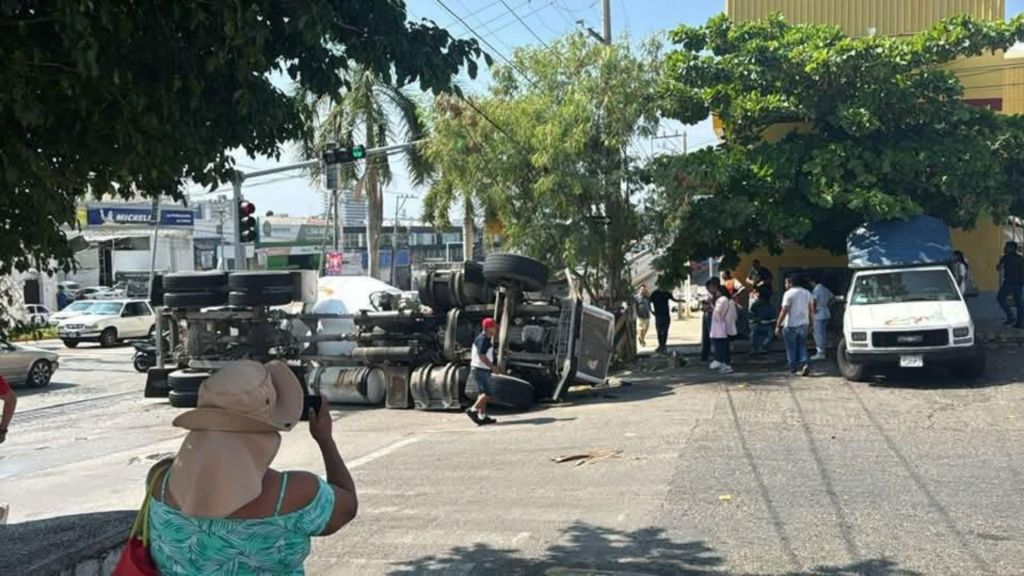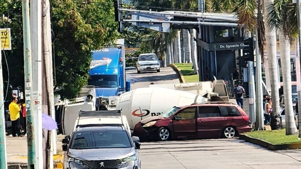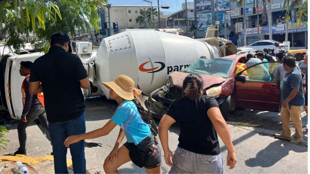 Redacción / Acapulco. La avenida Cuauhtémoc se convirtió en un cuello de botella vial tras la aparatosa volcadura de un camión revolvedor de cemento. El incidente ocurrió en la lateral, cerca de las oficinas de DHL, en el sentido Garita-Centro.