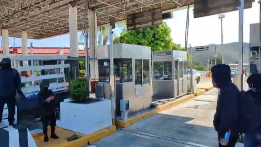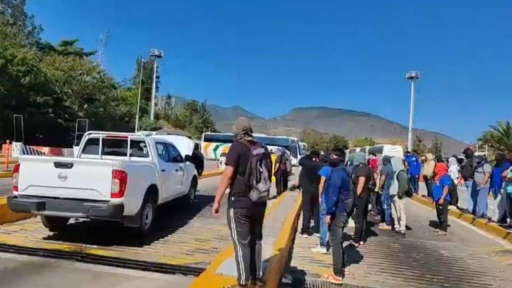 Redacción / Chilpancingo. Estudiantes de la normal rural Raúl Isidro Burgos de Ayotzinapa tomaron hoy la caseta Palo Blanco, sobre la Autopista del Sol, liberando el paso vehicular y repartiendo volantes con su grito de memoria y justicia.