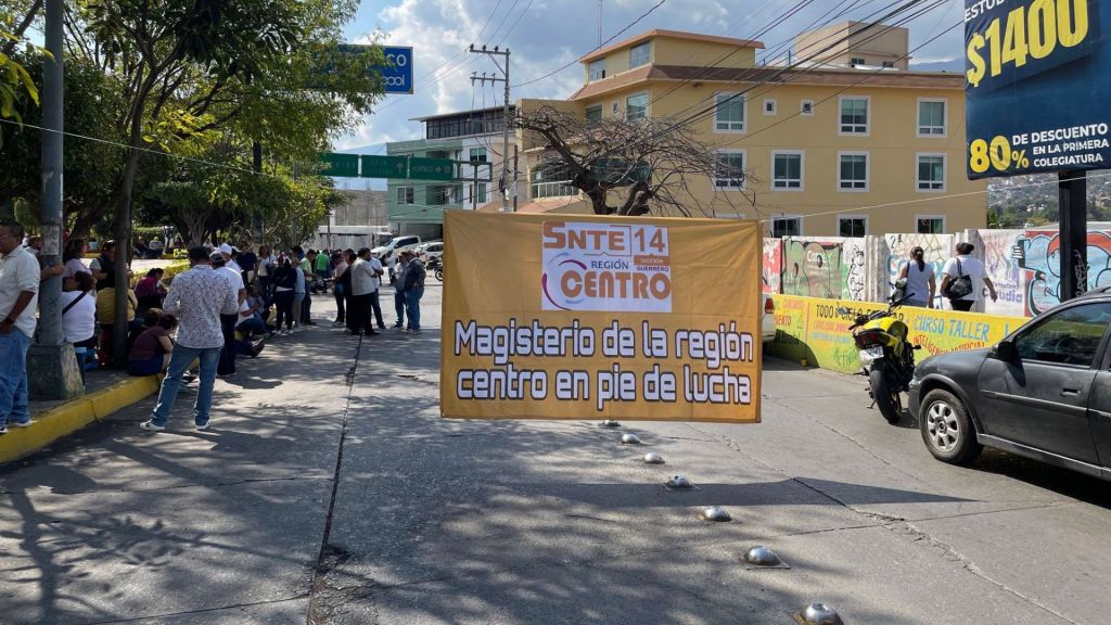 Redacción / Chilpancingo. Este viernes, integrantes de la sección 14 del SNTE colapsaron el sur de Chilpancingo con un bloqueo total en la avenida Lázaro Cárdenas. ¿La razón? El persistente retraso en bonos de fin de año y despensa que la Secretaría de Educación Guerrero (SEG) debió liquidar desde diciembre.