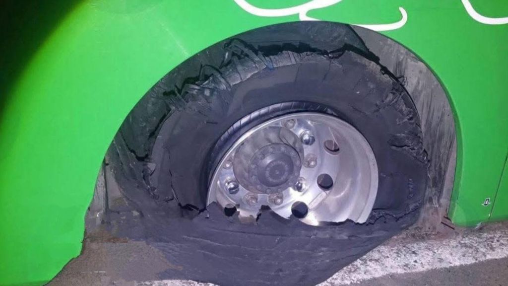 Pese a las detonaciones que dañaron motor, llantas y sistema de aire, el chofer logró avanzar hasta El Cayacal, salvando la vida de los usuarios, quienes resultaron ilesos.